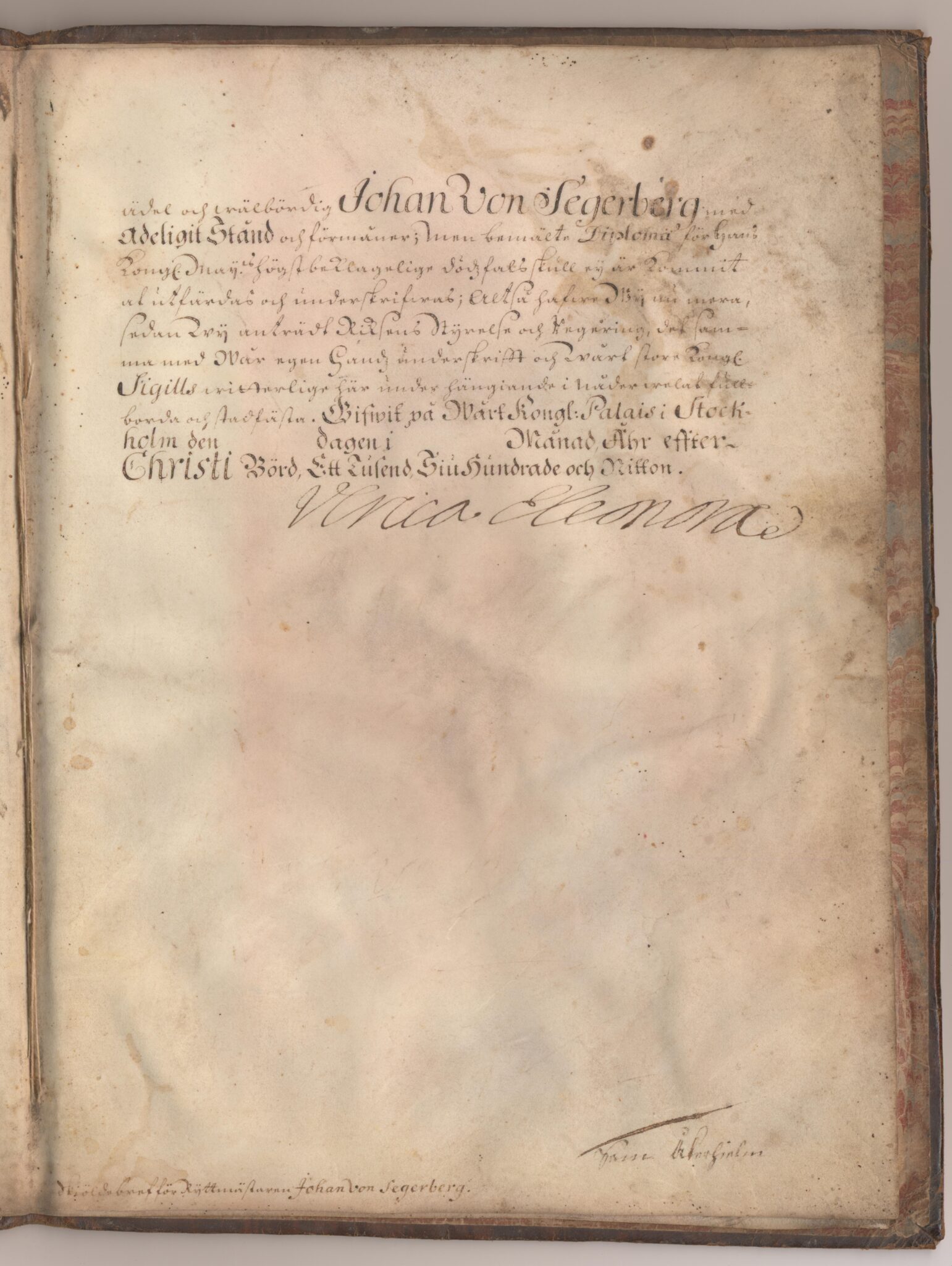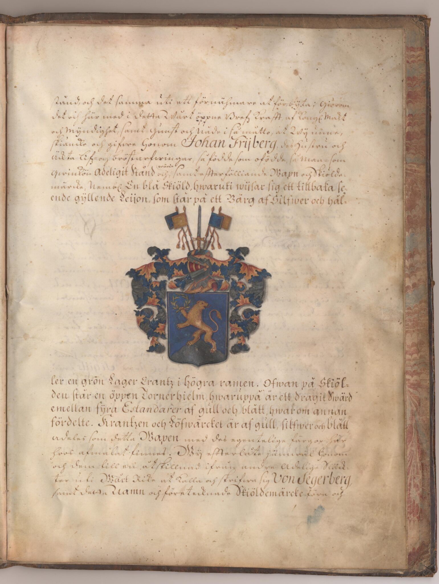 Sköldebrevet i original för utdöda adliga ätten von Segerberg, nr 1564.