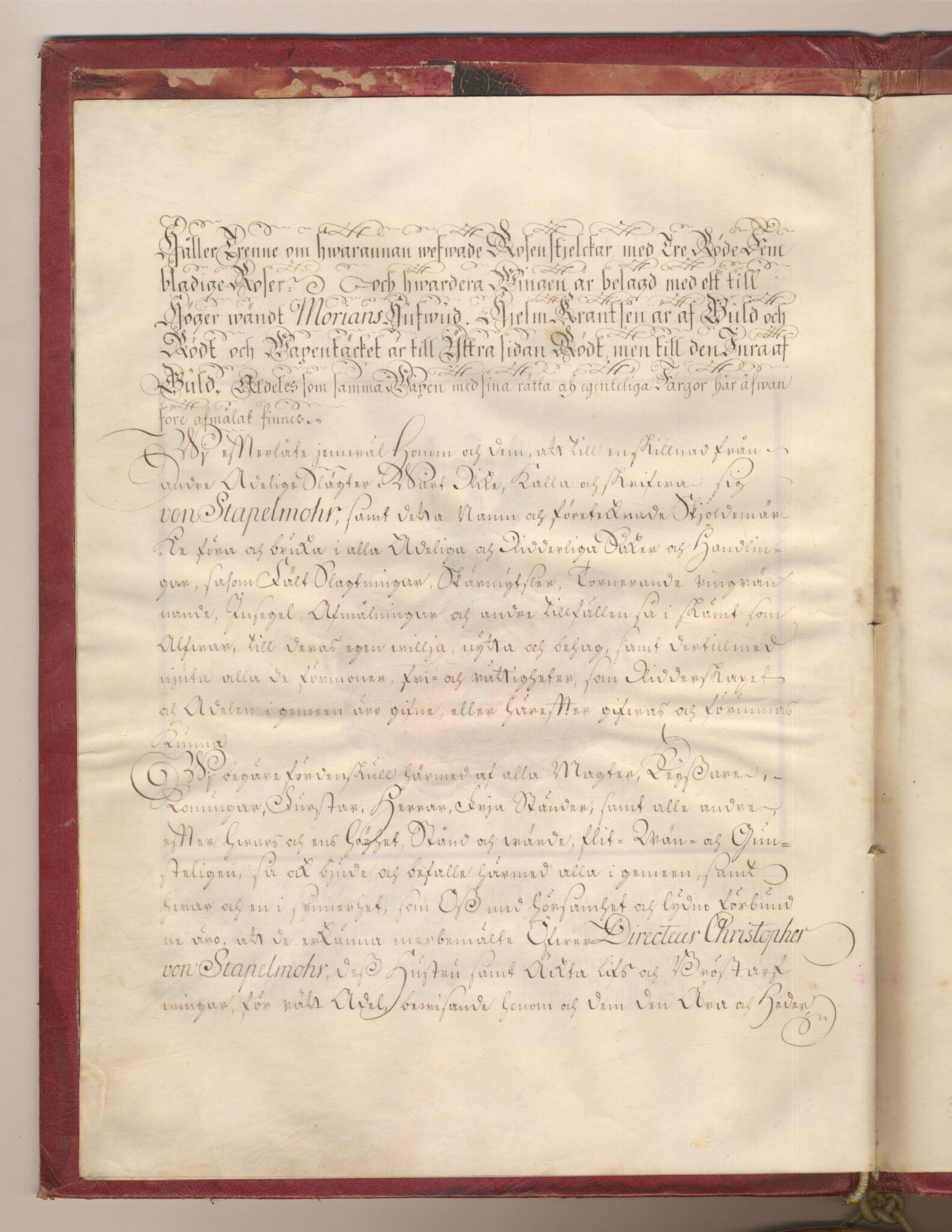 Sköldebrevet i original för adliga ätten von Stapelmohr, nr 2036.