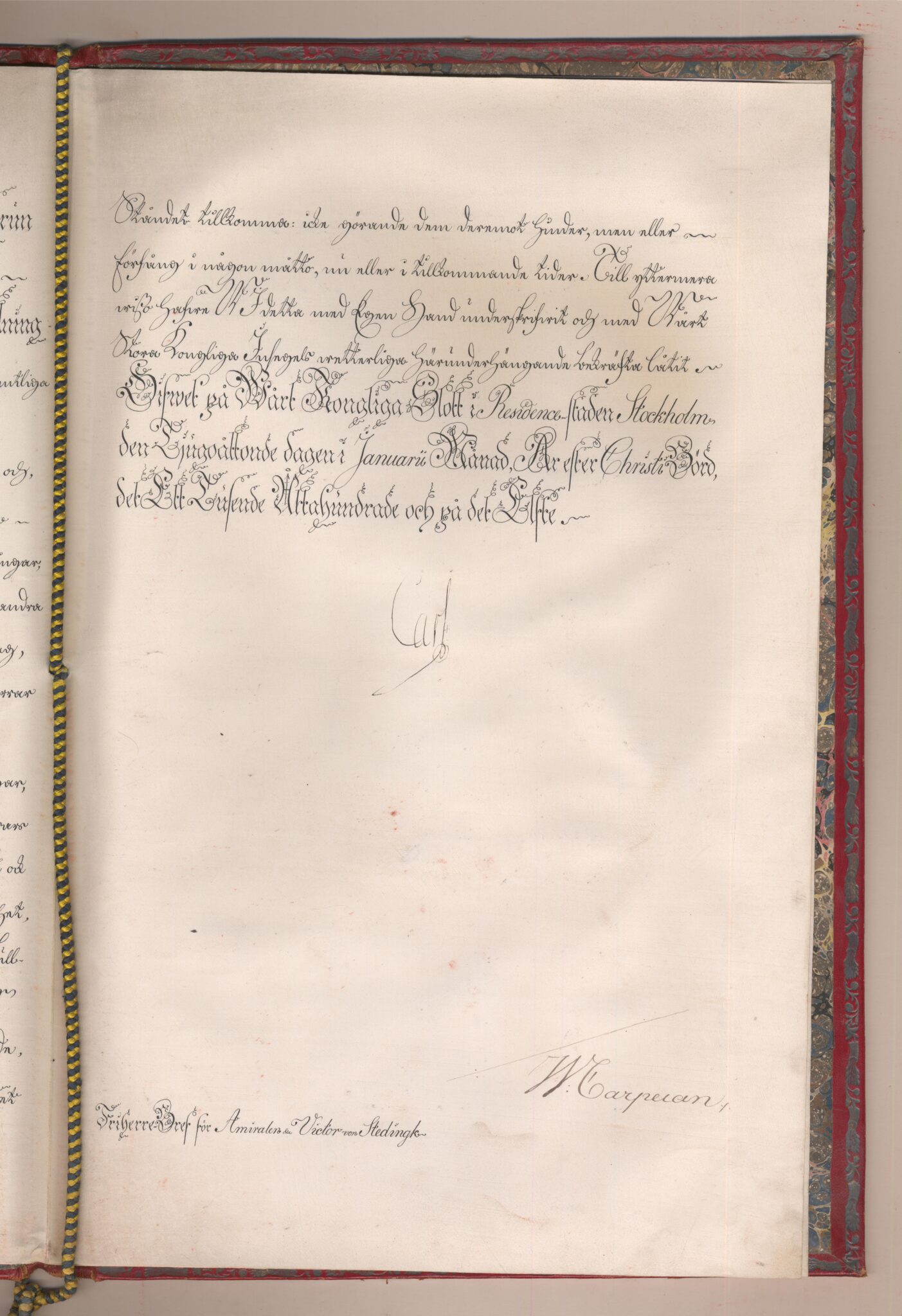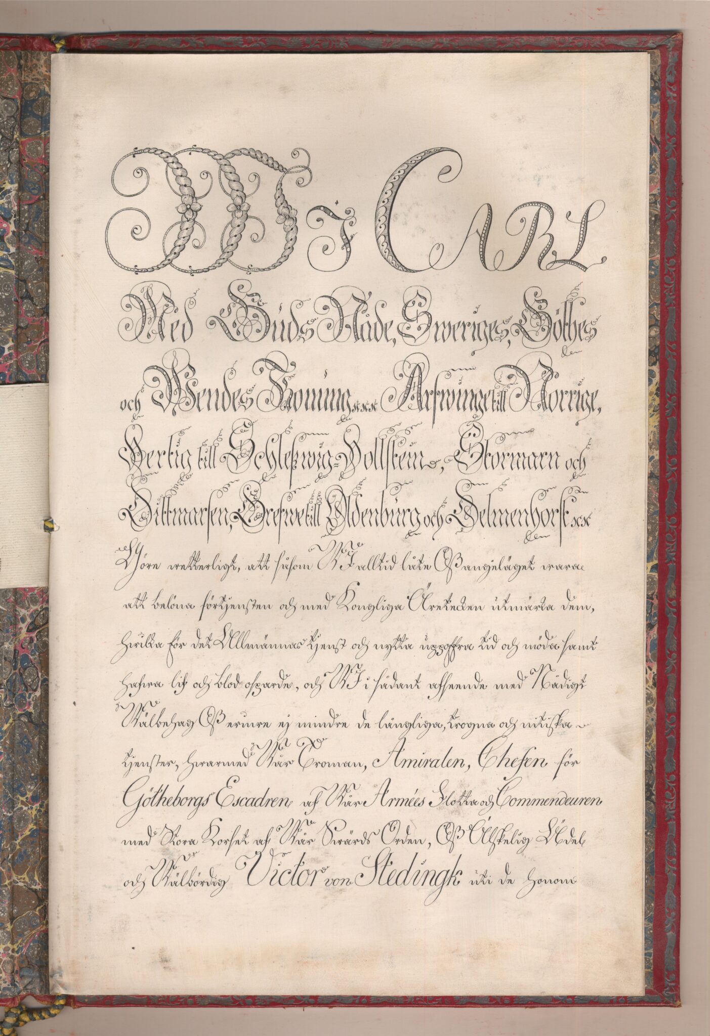 Friherrebrevet i original för utdöda friherrliga ätten von Stedingk, nr 342.