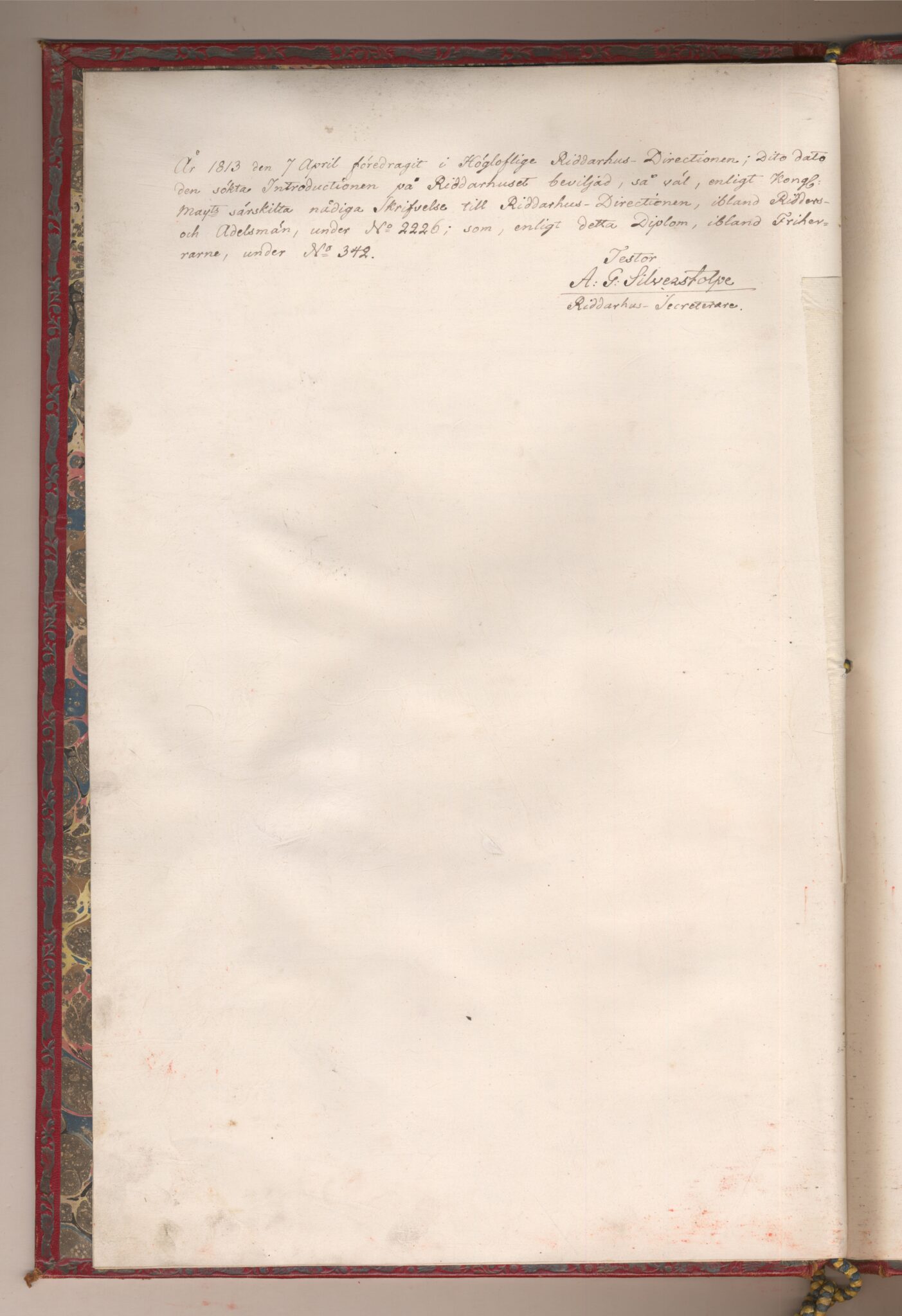 2. Resolution på ansökning om adligt diplom, Karl XIII, Stockholm 1813-01-26.