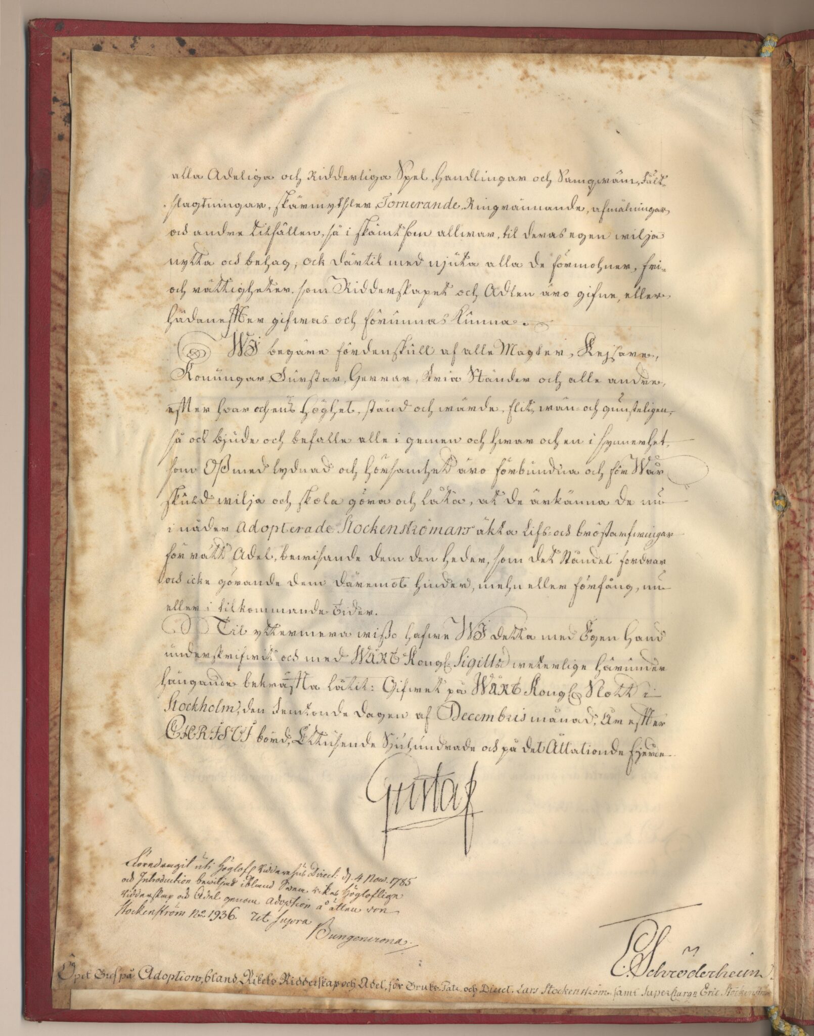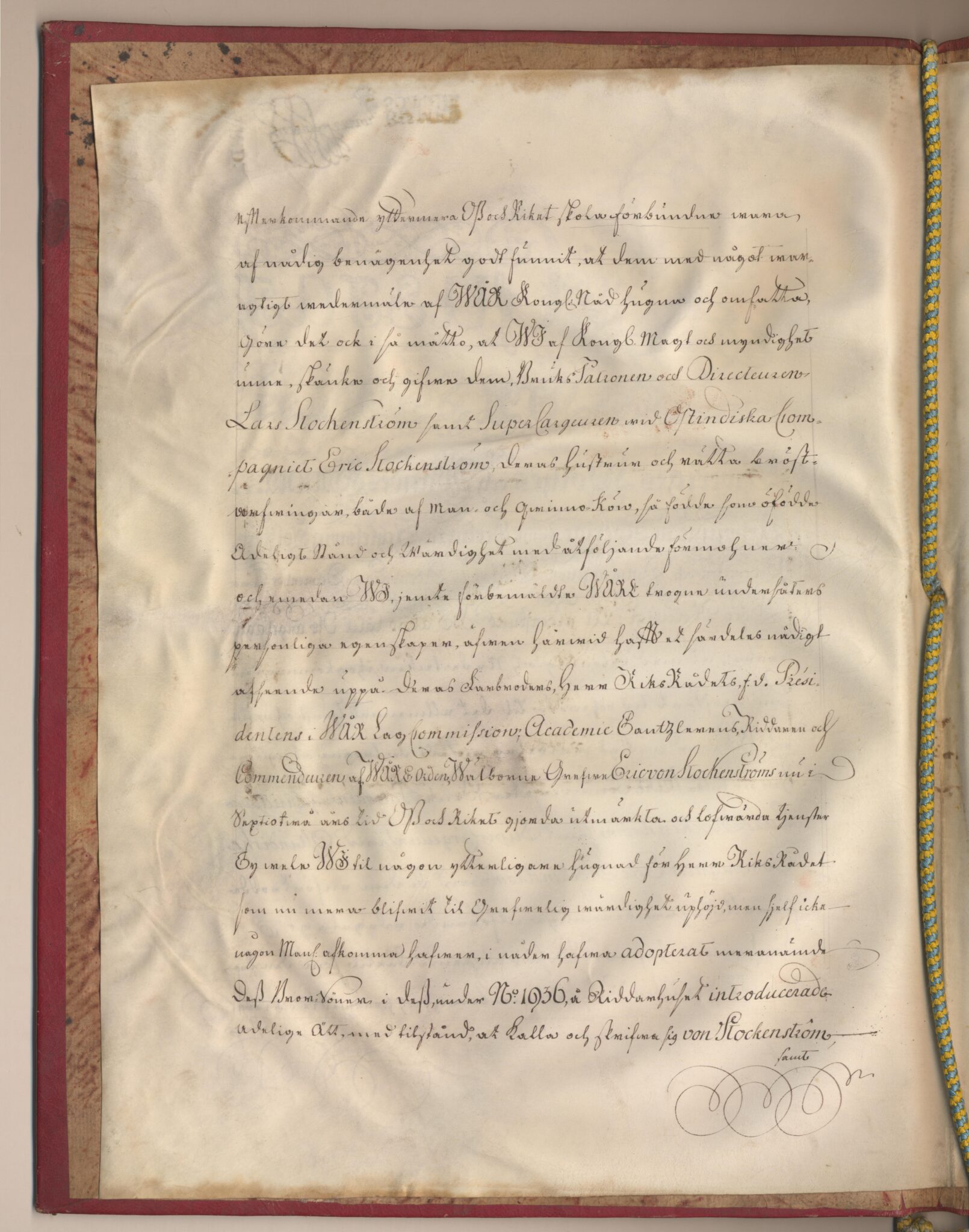 Adoptionsbrevet i original för adliga ätten von Stockenström, nr 1936.