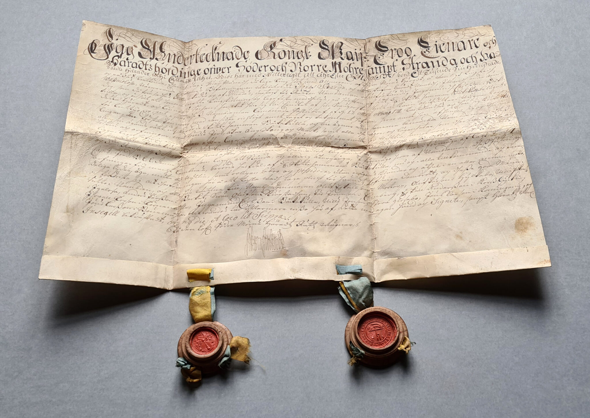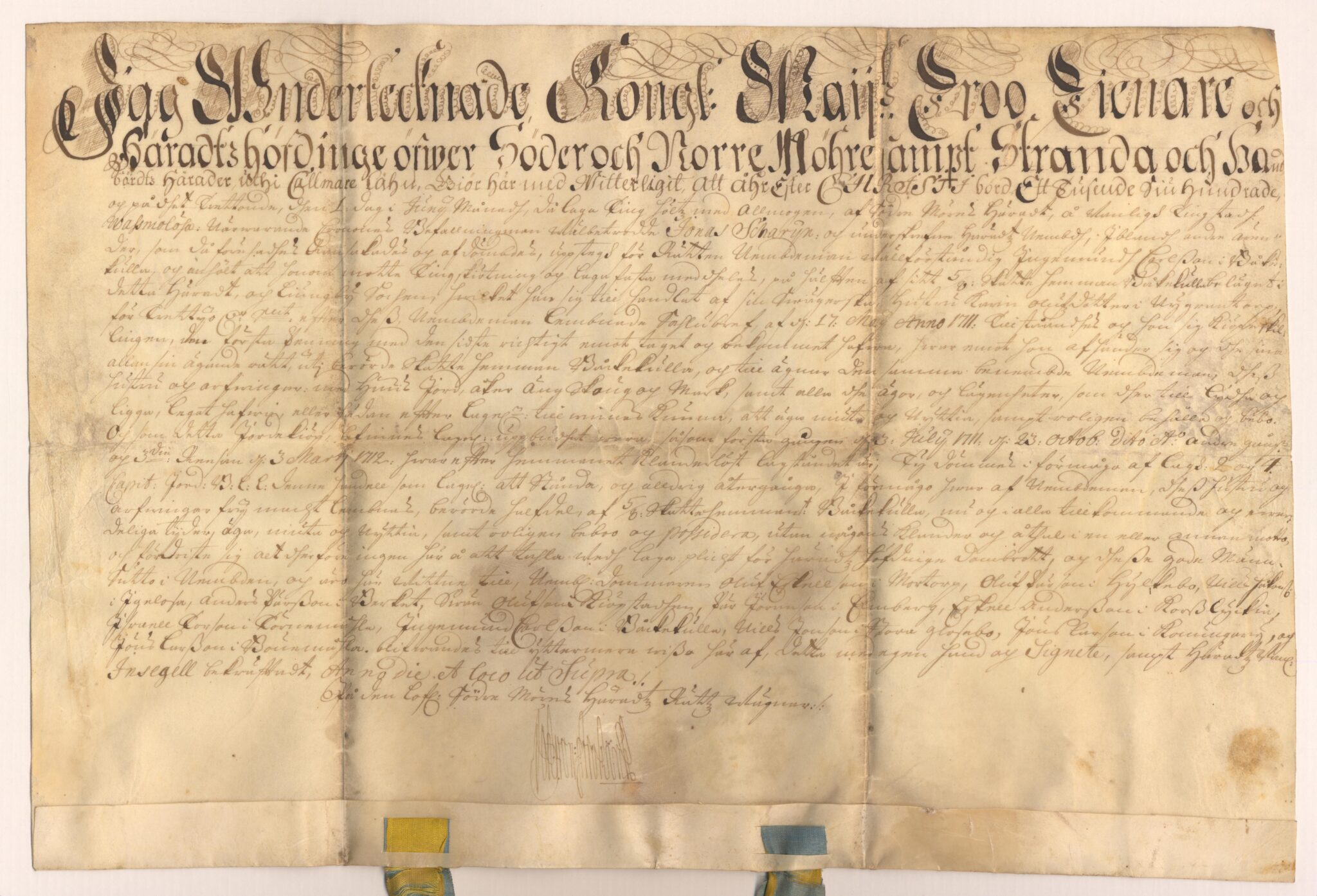 Fastebrev från 1713-06-01, utfärdat av häradshövding Johan von Strokirch (1675–1724).