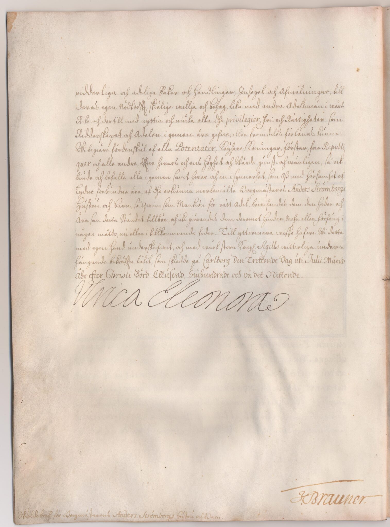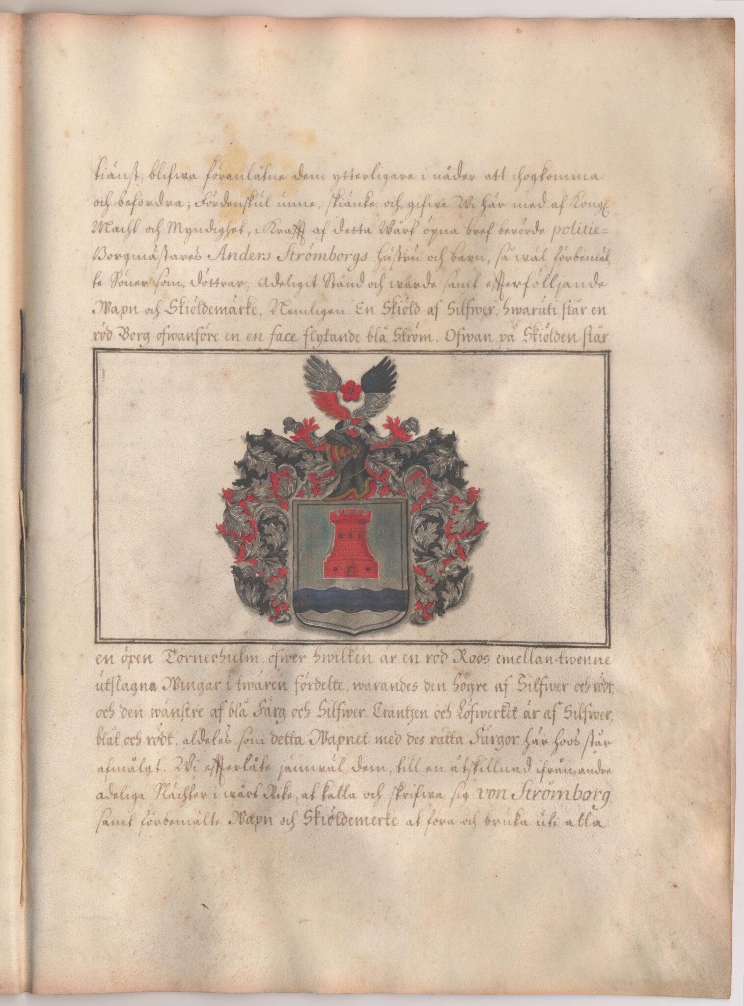 Sköldebrevet i original för utdöda adliga ätten von Strömborg, nr 1638.