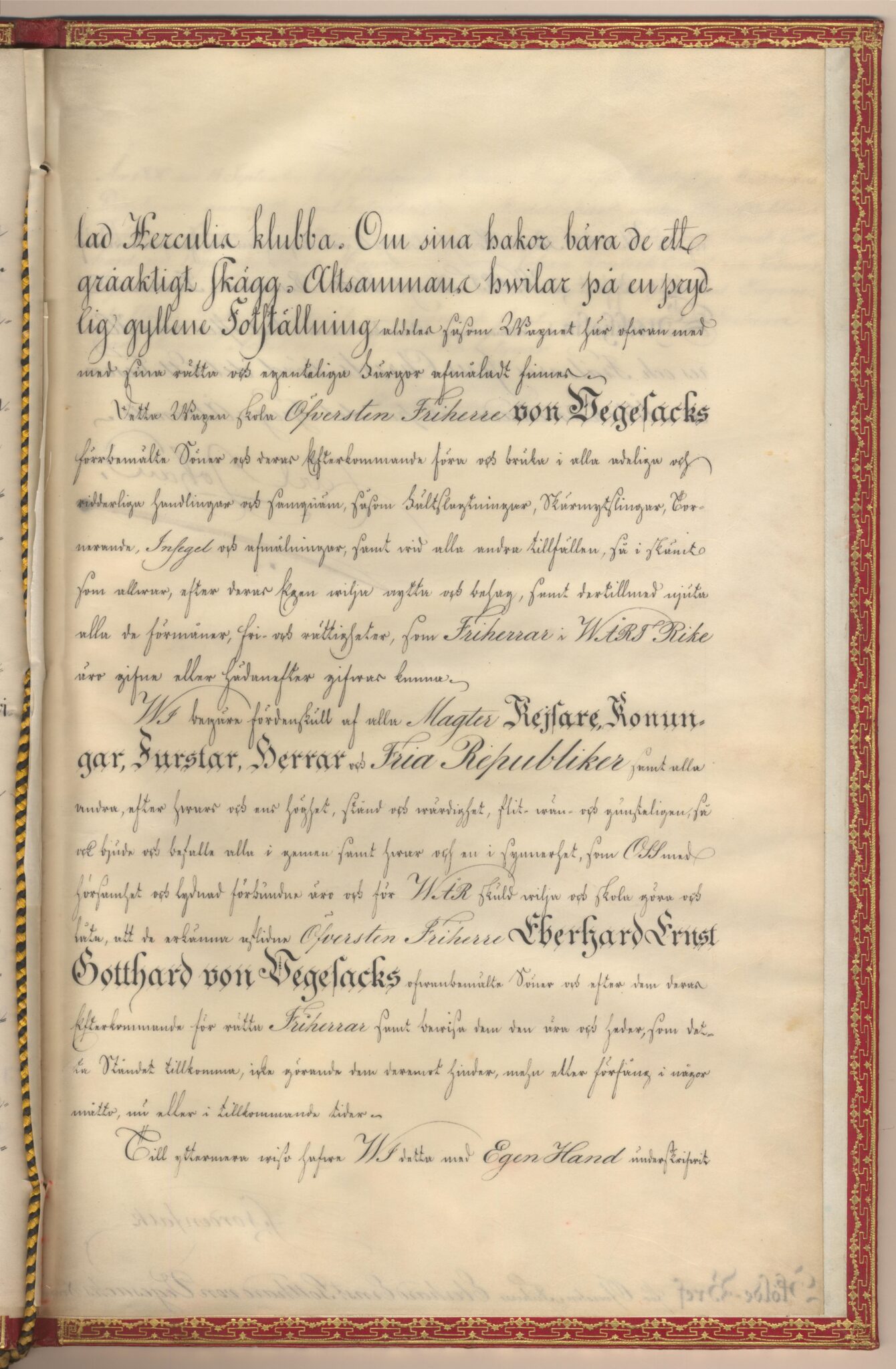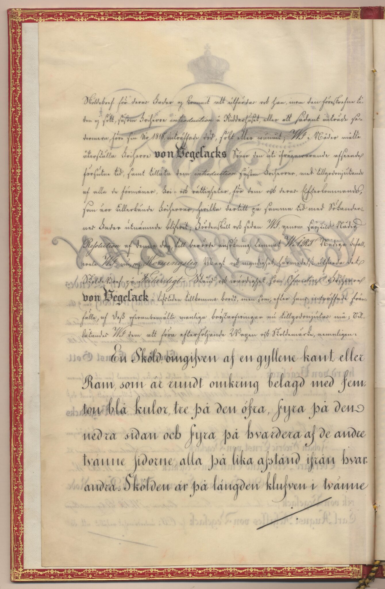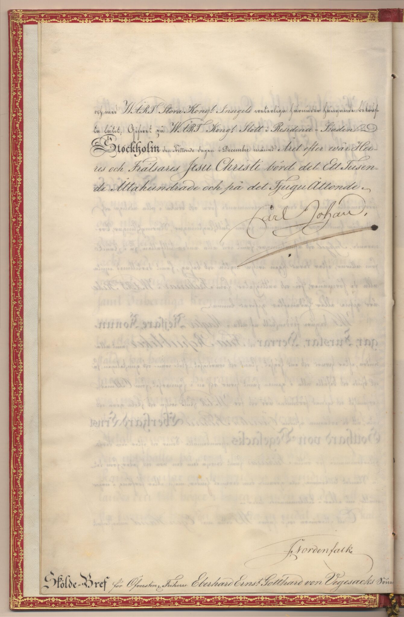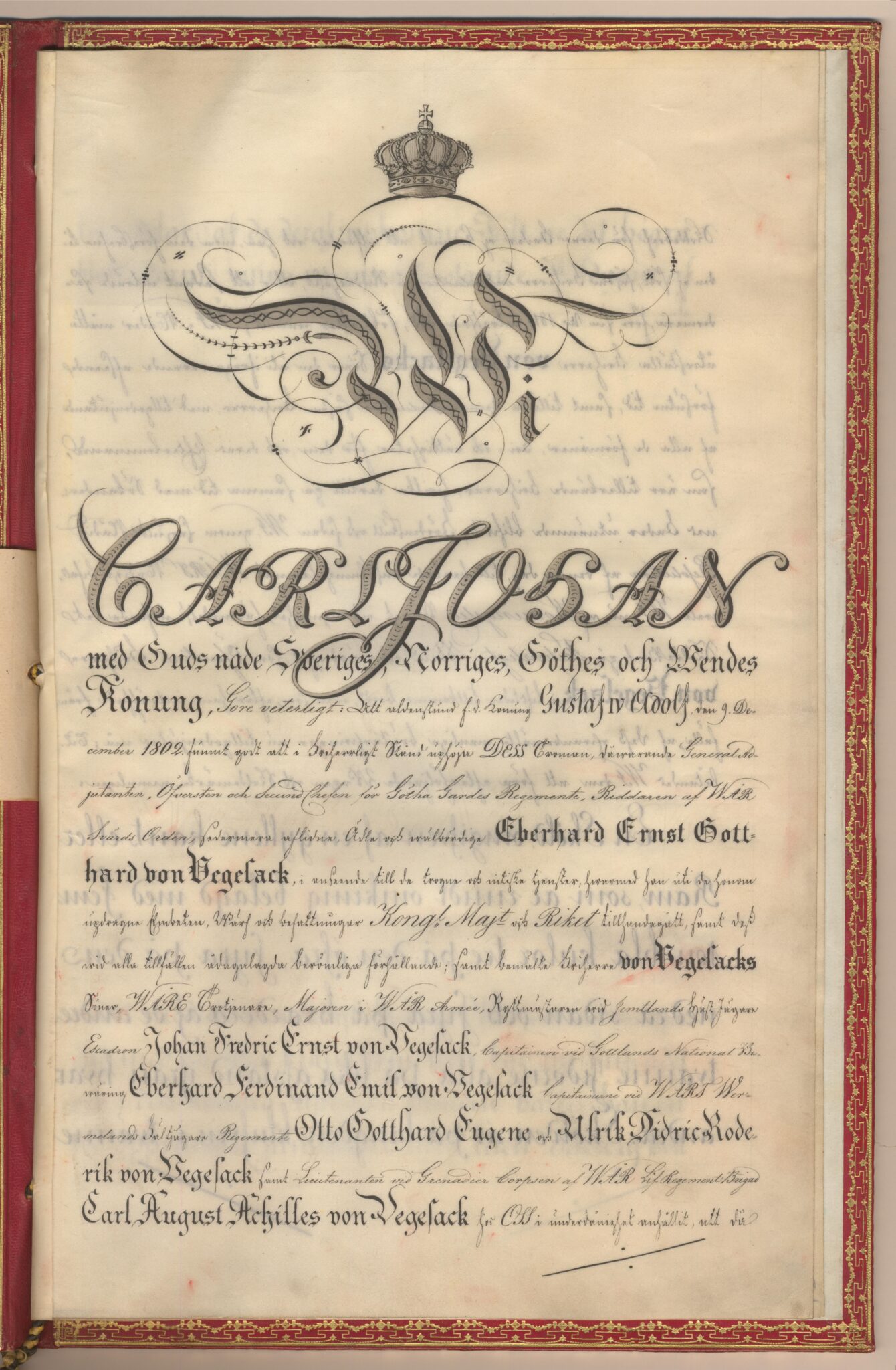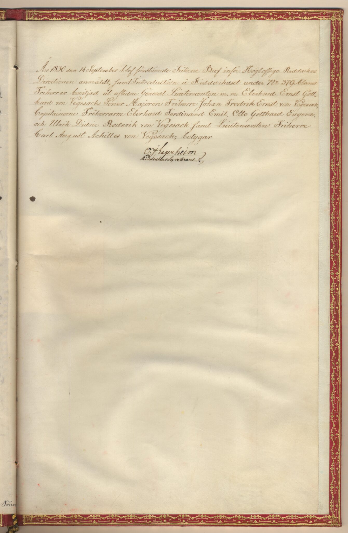 Friherrebrevet i original för friherrliga ätten von Vegesack, nr 379.