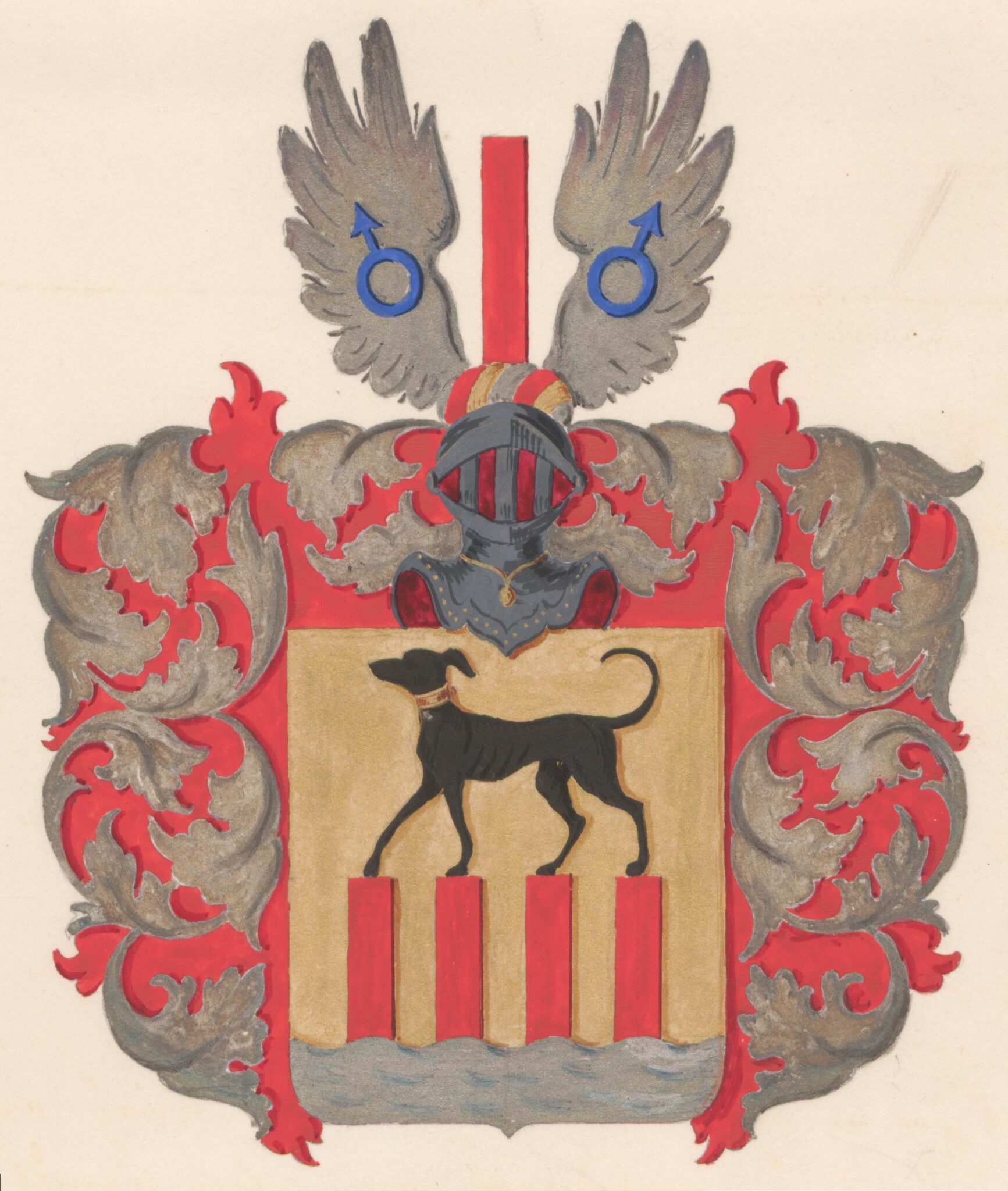 Utförd: Riksheraldiker August Wilhelm Stiernstedt, Stockholm, 1857-08-12.