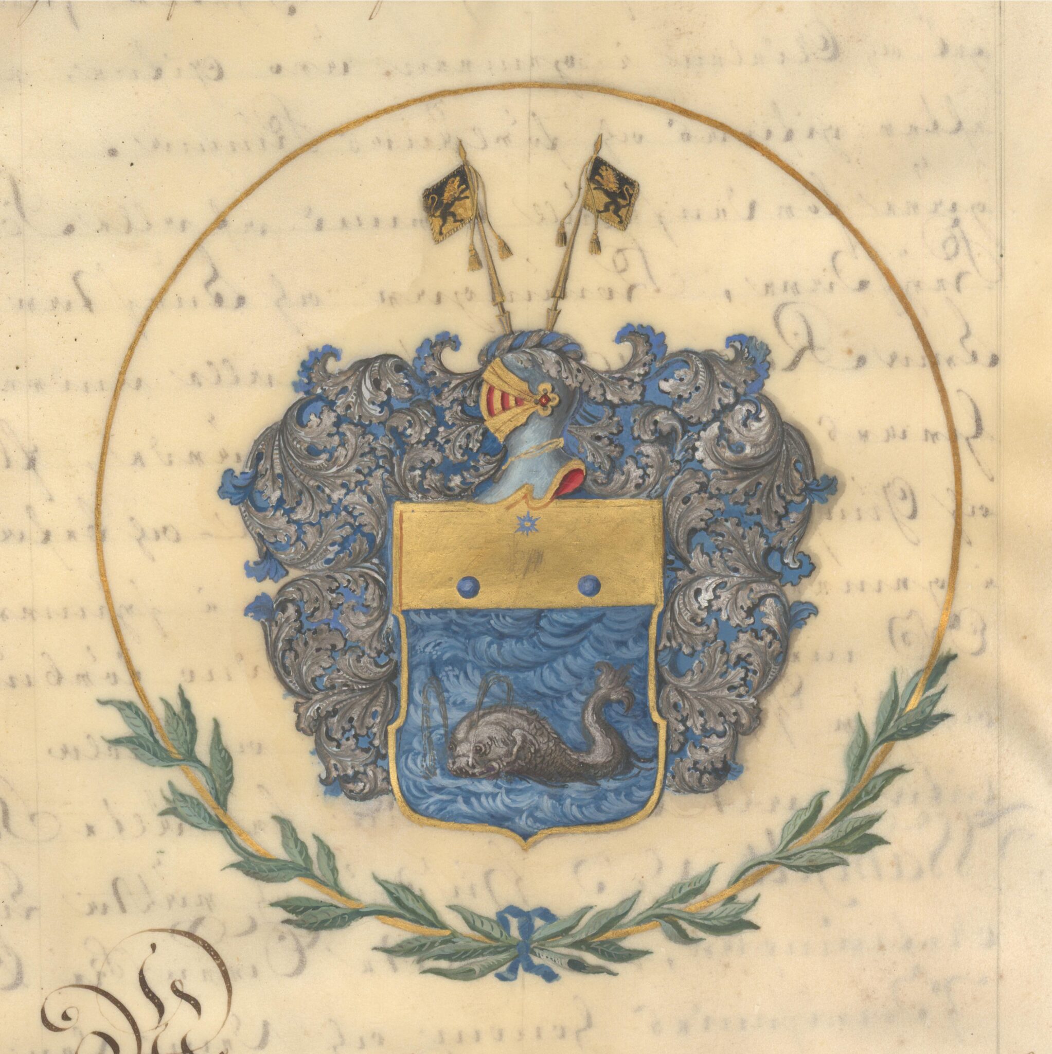 Sköldebrevet i original för utdöda adliga ätten Wahlfelt, nr 1930.