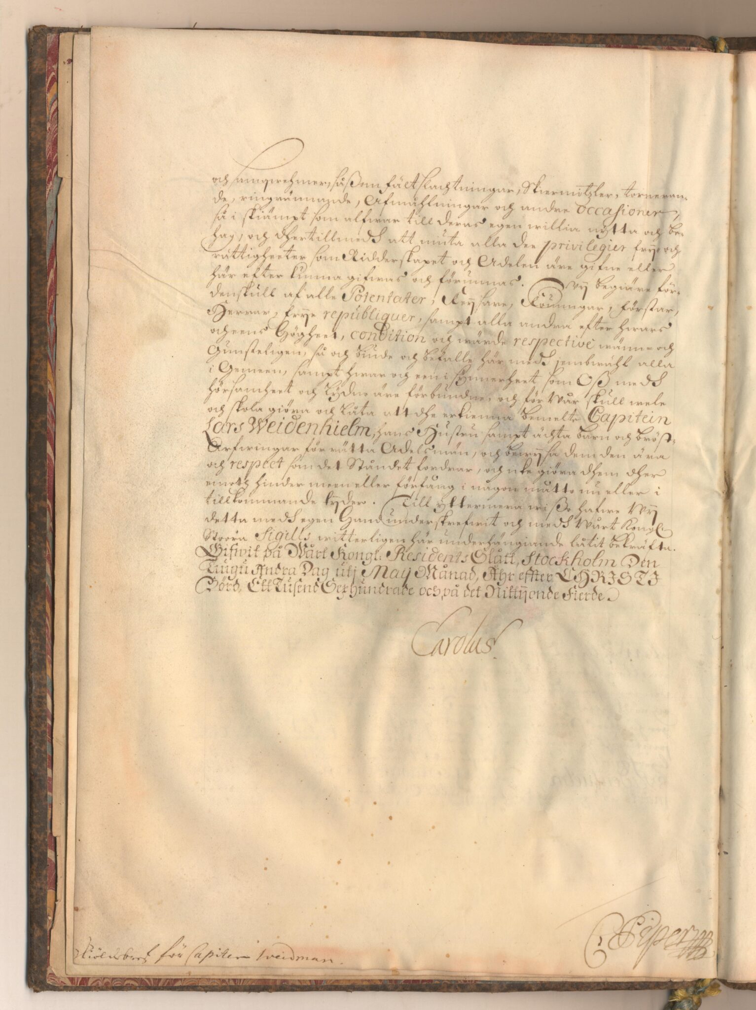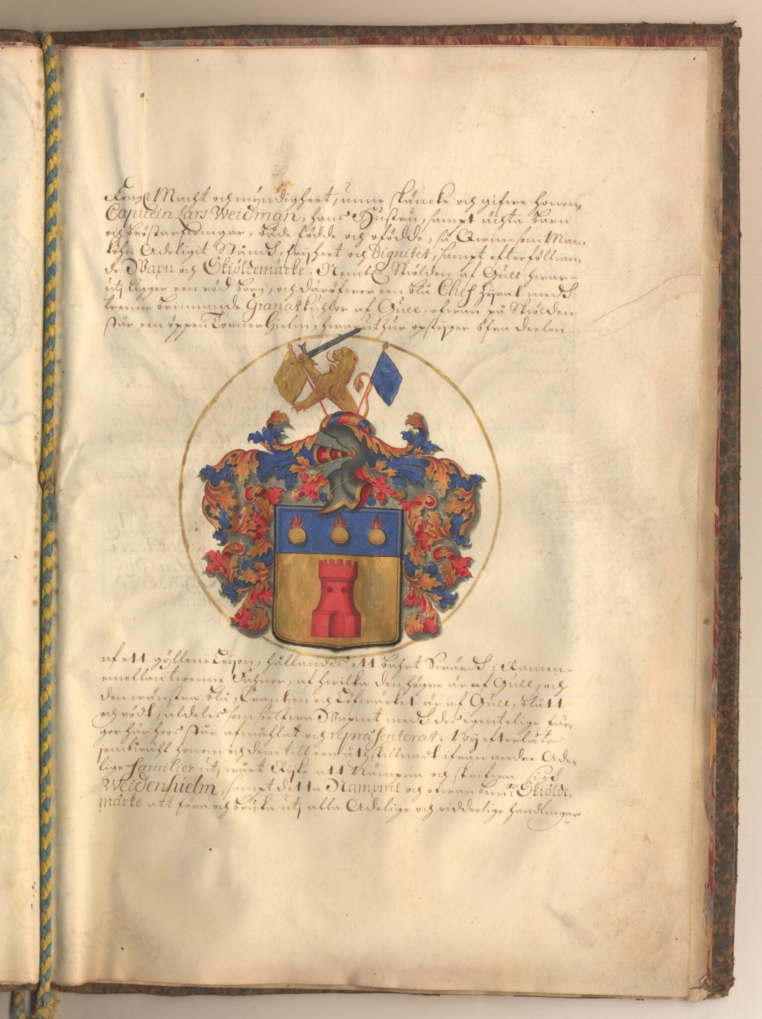 Sköldebrevet i original för adliga ätten Weidenhielm, nr 1314.