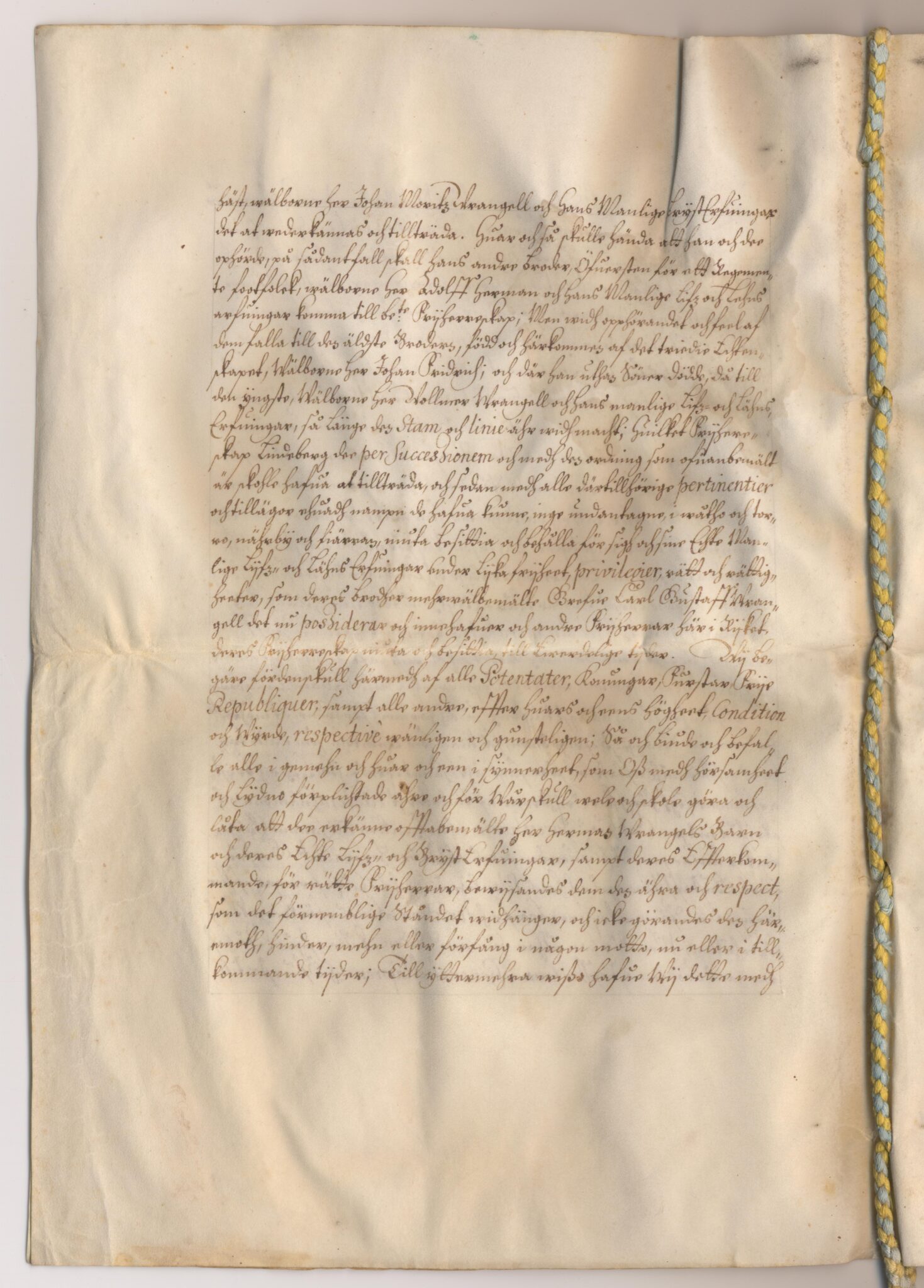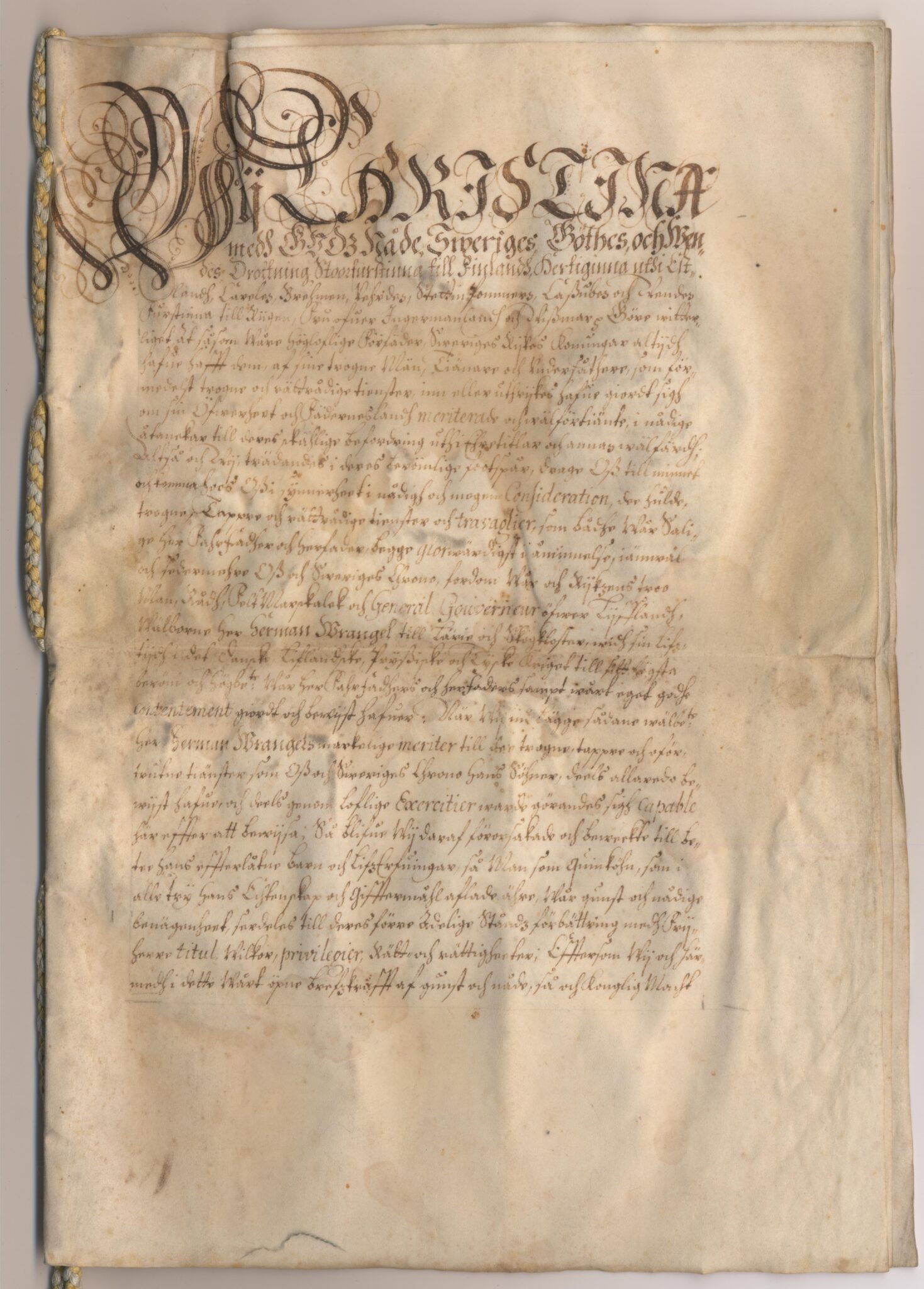 Friherrebrevet i original för friherrliga ätten Wrangel af Lindeberg, nr 41.