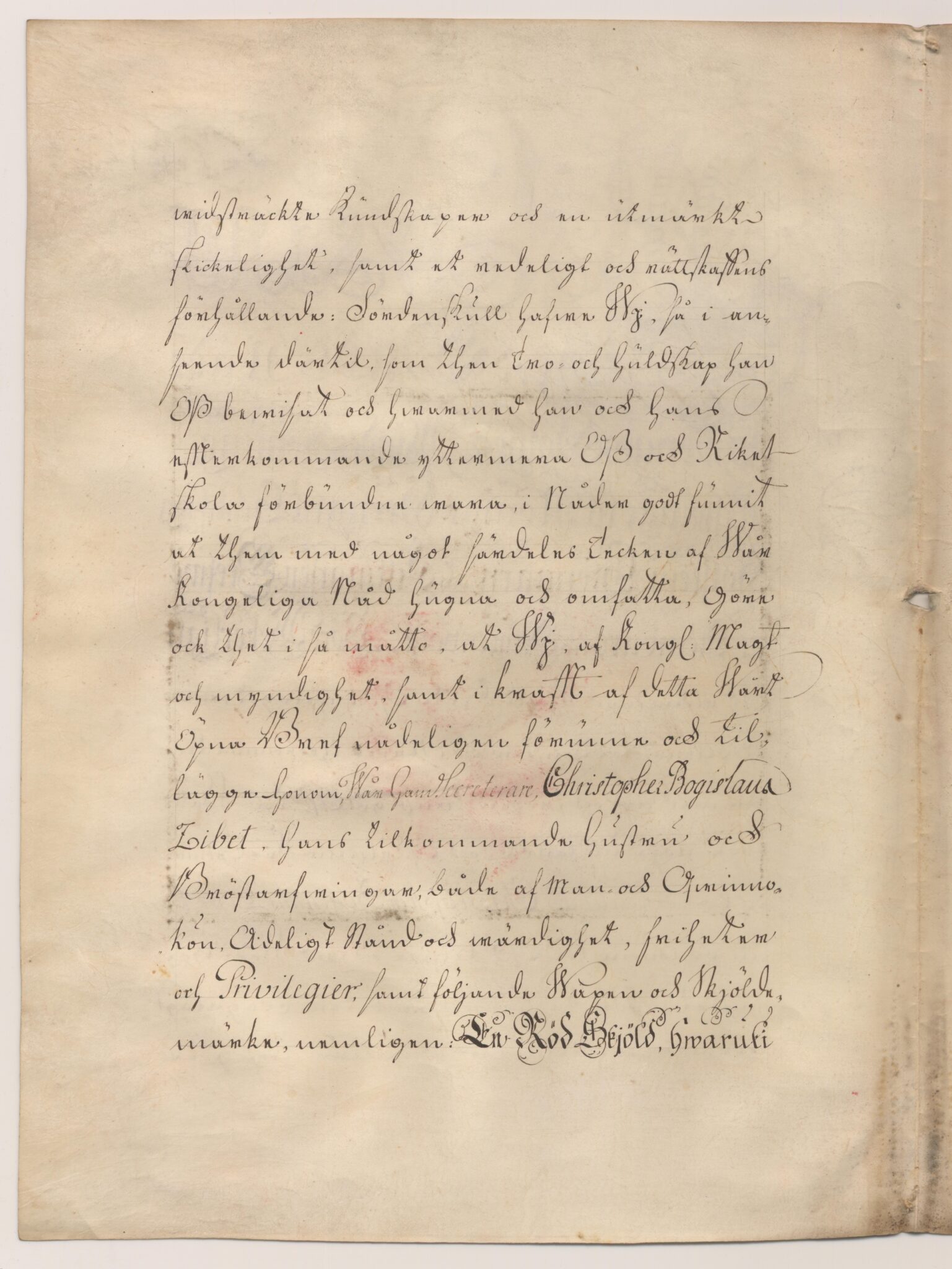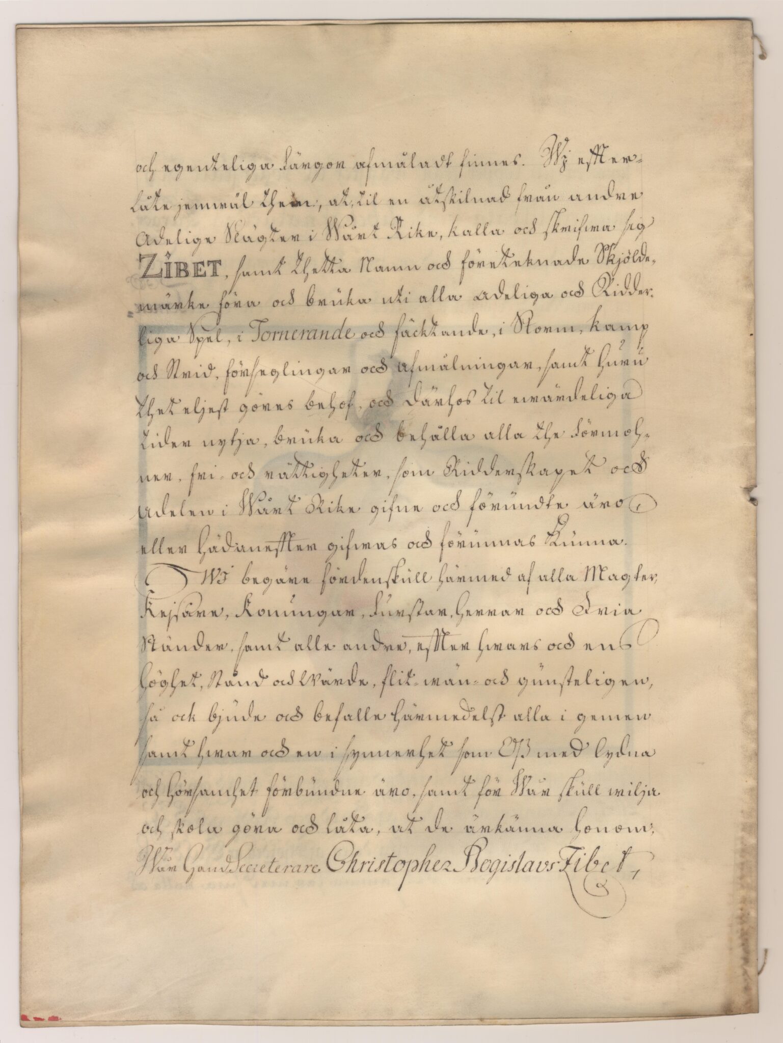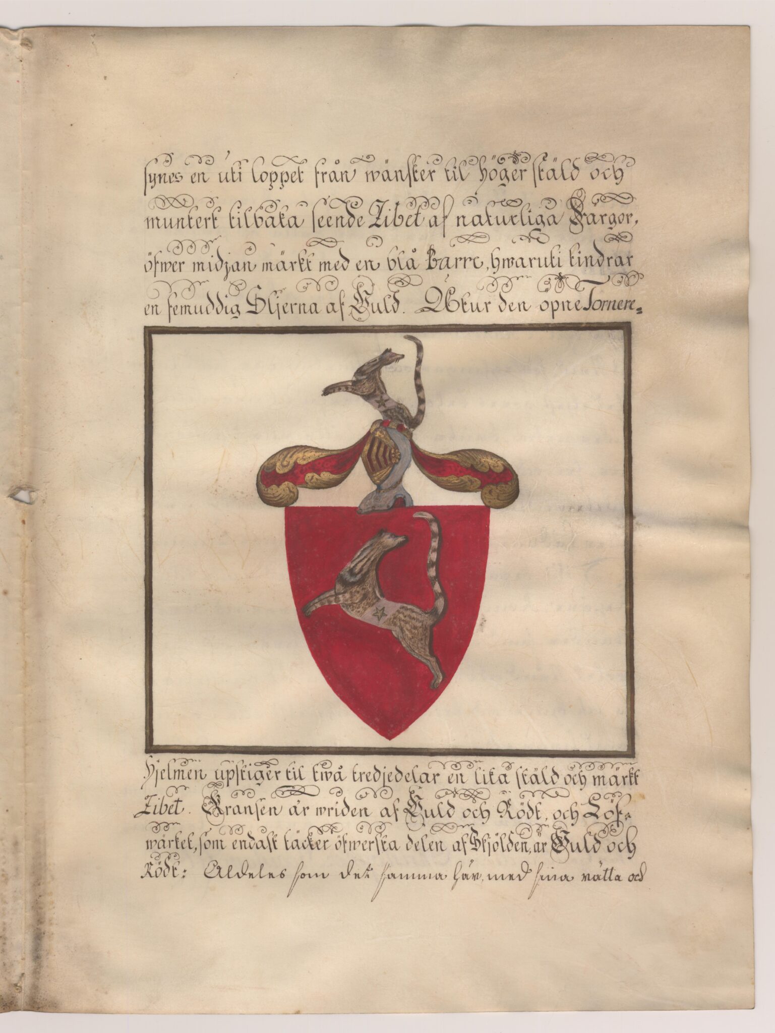 Sköldebrevet i original för utdöda adliga ätten Zibet, nr 2124 B.